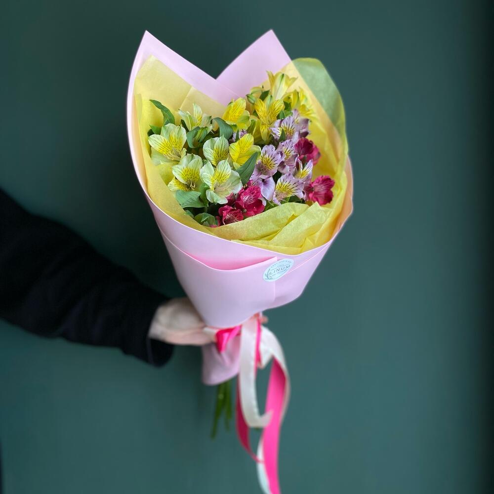 Яркий , вызывающий улыбку , моно букет с альстромерией – приятные комплимент коллеге или любимой