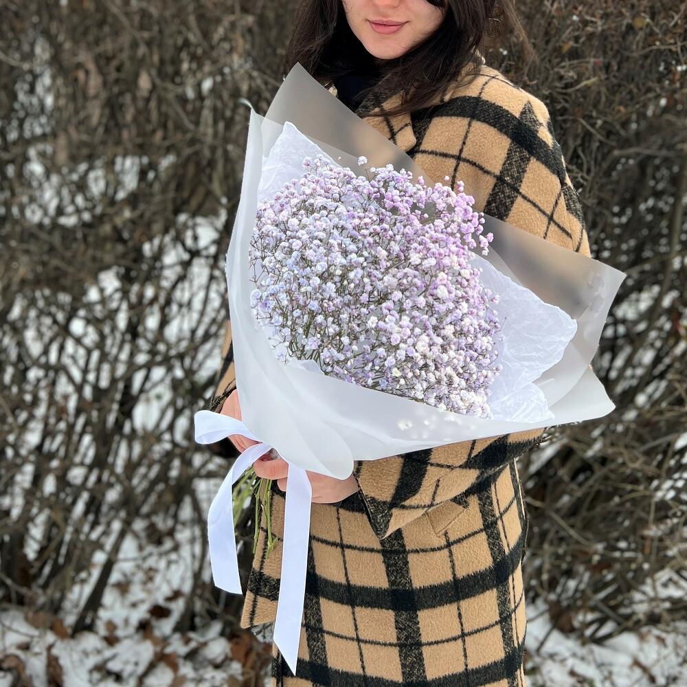 “Сиреневый туман” – композиция из гипсофилы в шляпной коробке