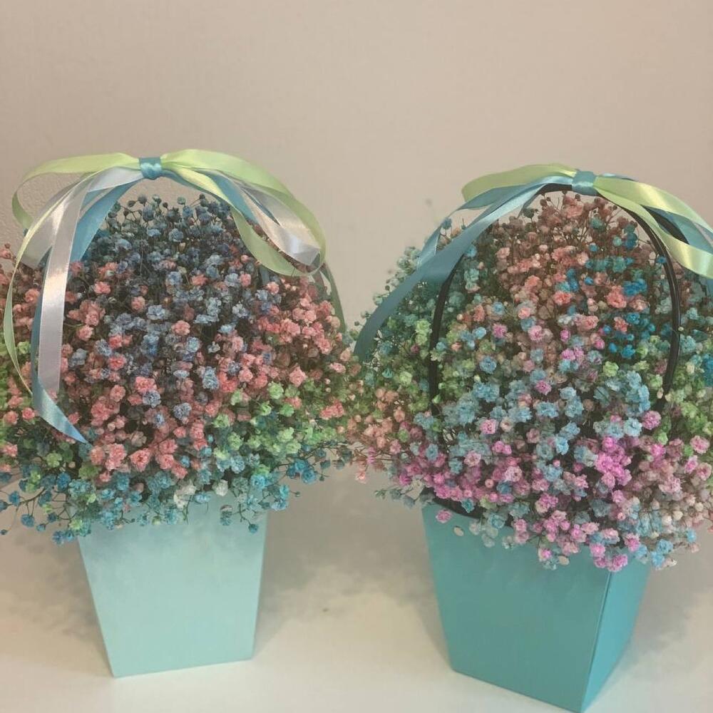 Гипсофила – 7 шт.Сумочка картонная – 1 шт.Флористическая губка (оазис) – 1 шт.