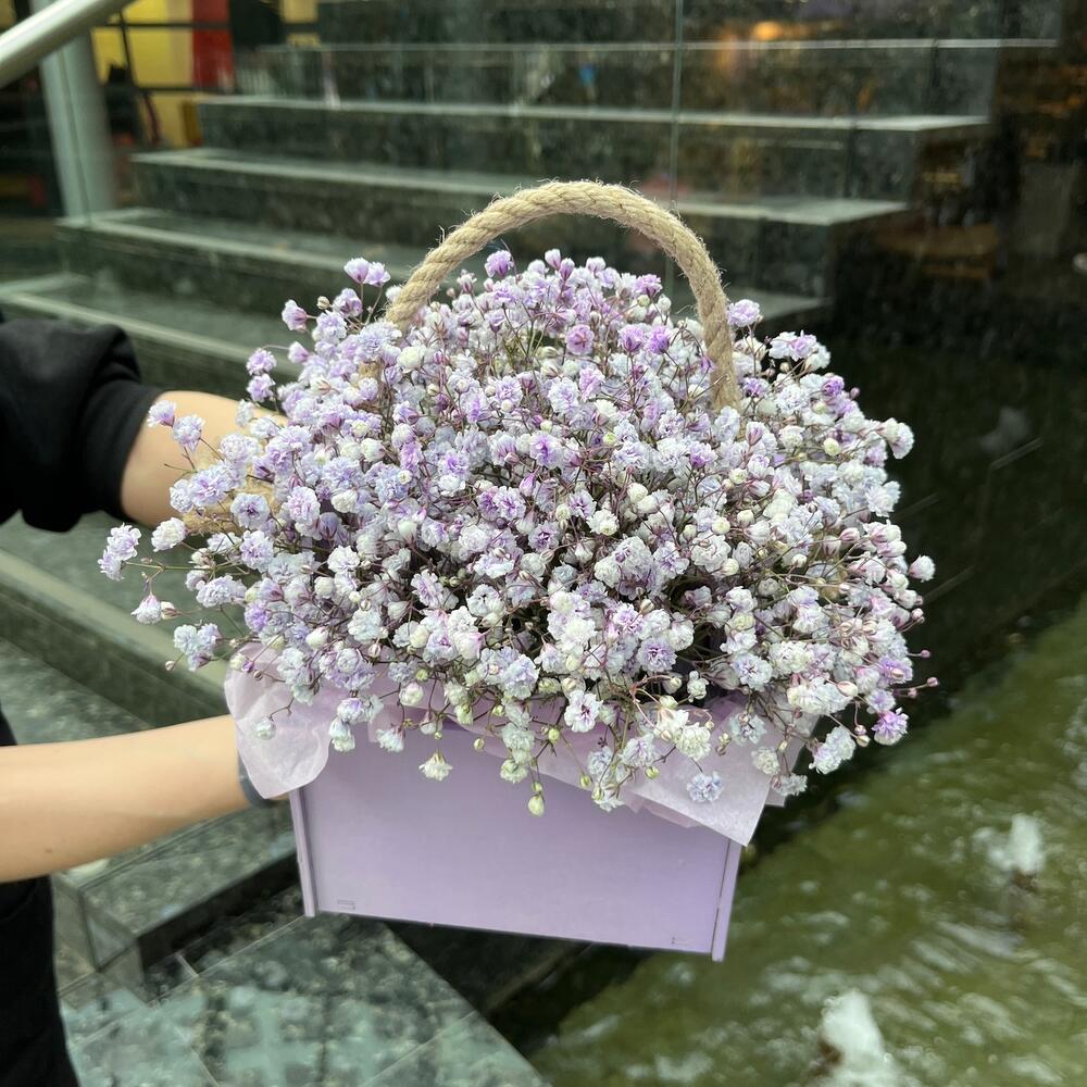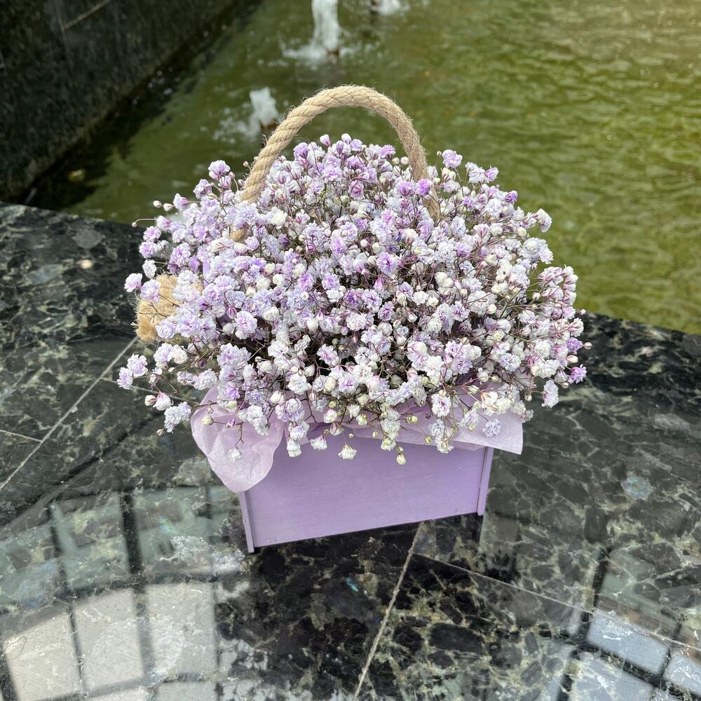 Гипсофила – 3 шт.Тишью – 1 шт.Ящик деревянный – 1 шт.