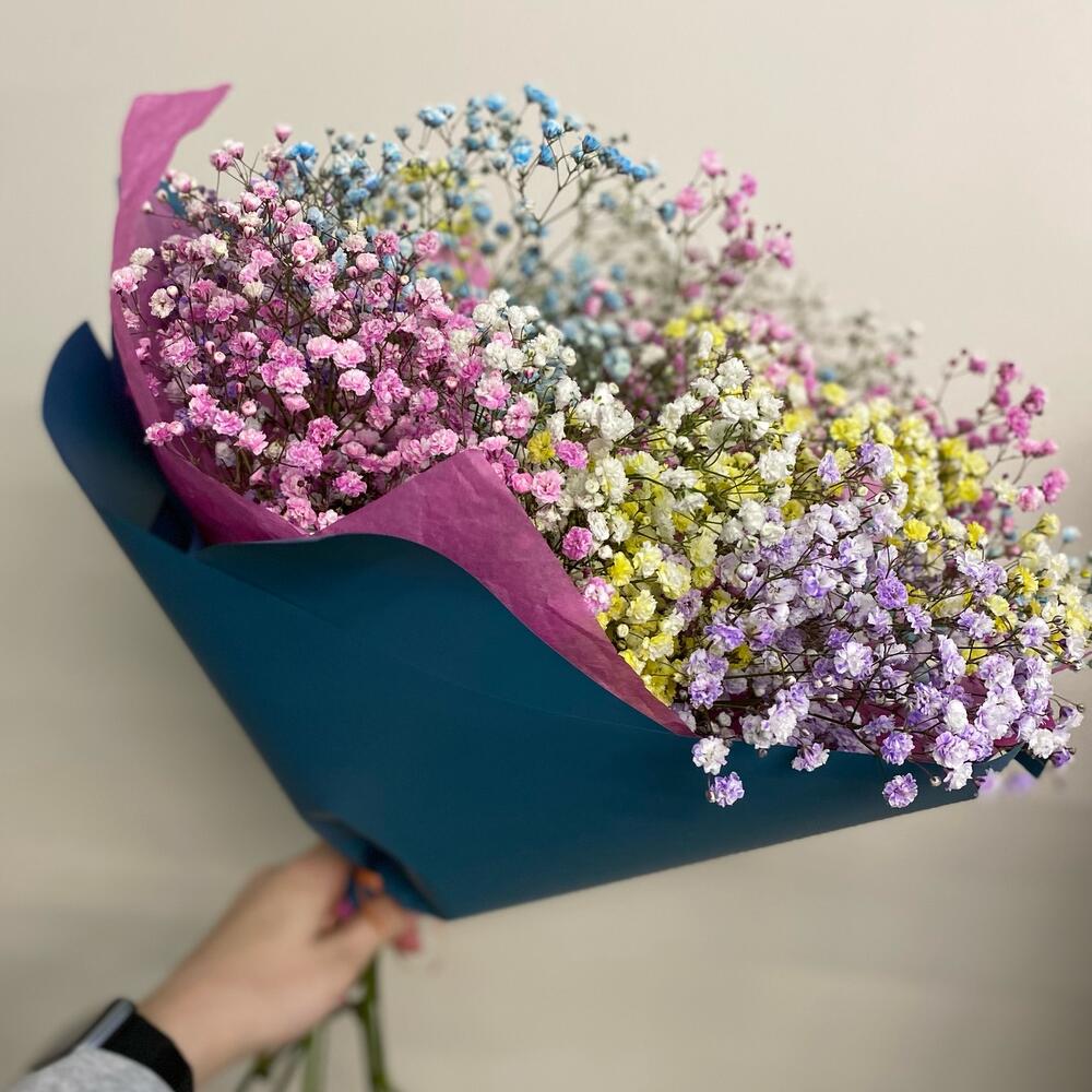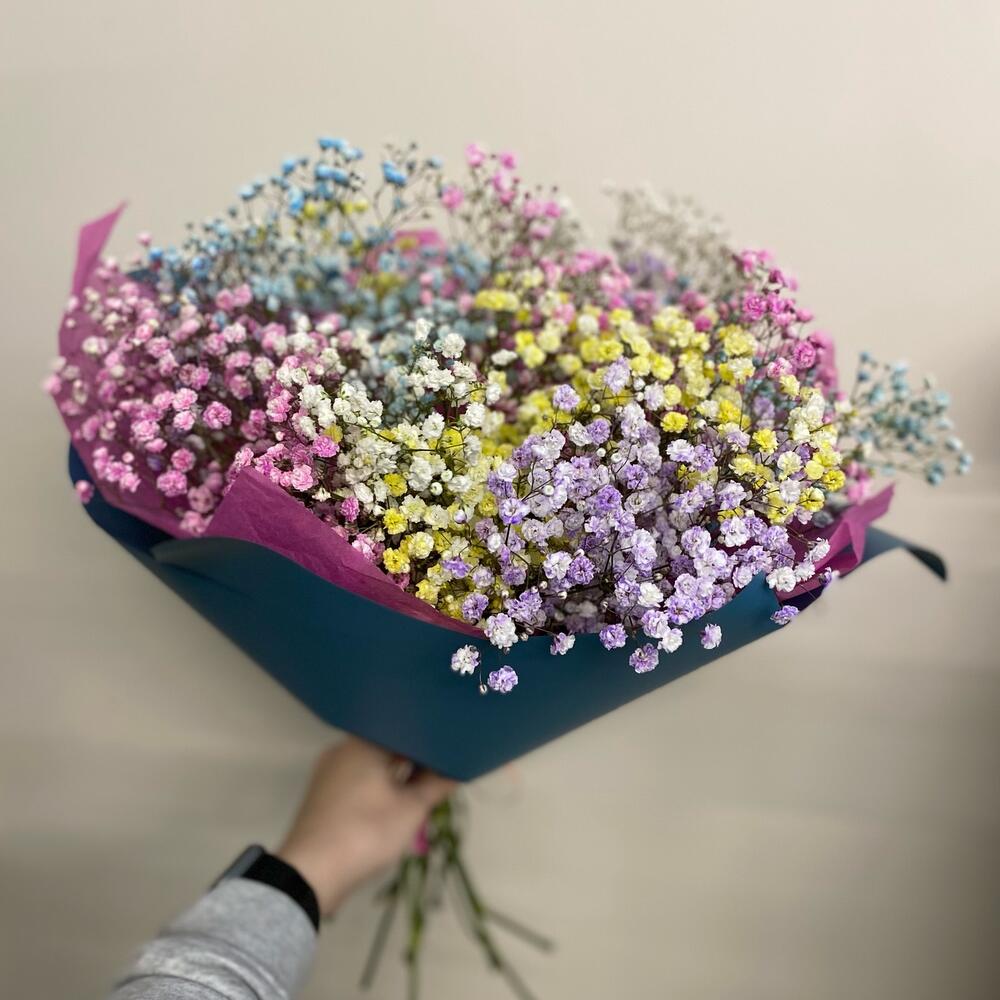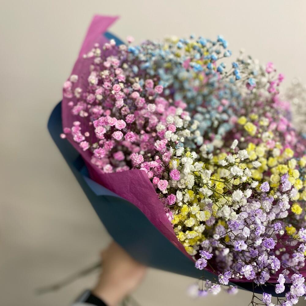 Монобукет из радужной гипсафилы