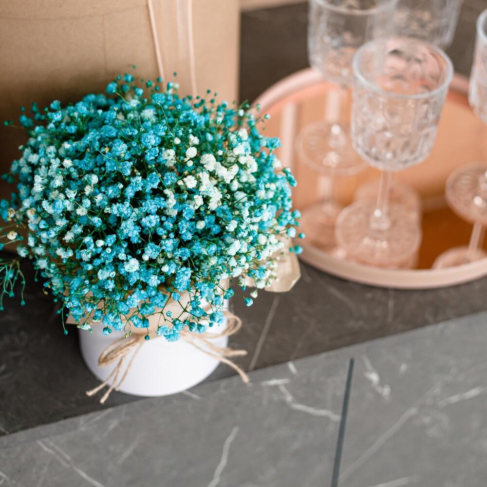 Гипсофила – 5 шт.Коробка шляпная – 1 шт.Оазис флористический – 1 шт.Тишью – 4 шт.