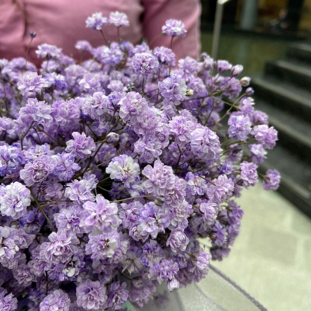 “Сиреневый туман” – композиция из гипсофилы в шляпной коробке