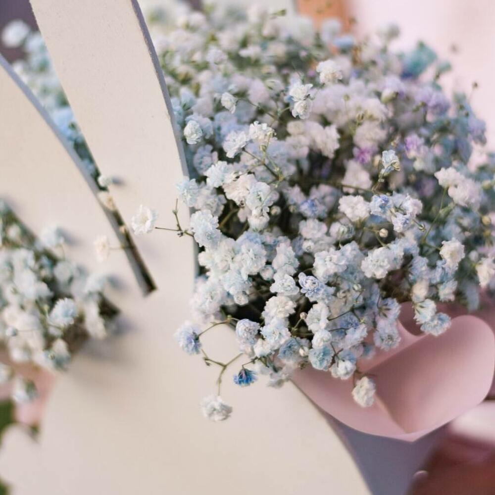 ящик зайка – 1 шт.Гипсофила голубая – 1 шт.