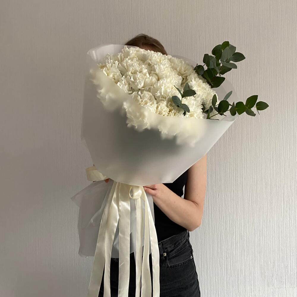 Букет из белых гвоздик и эвкалипт