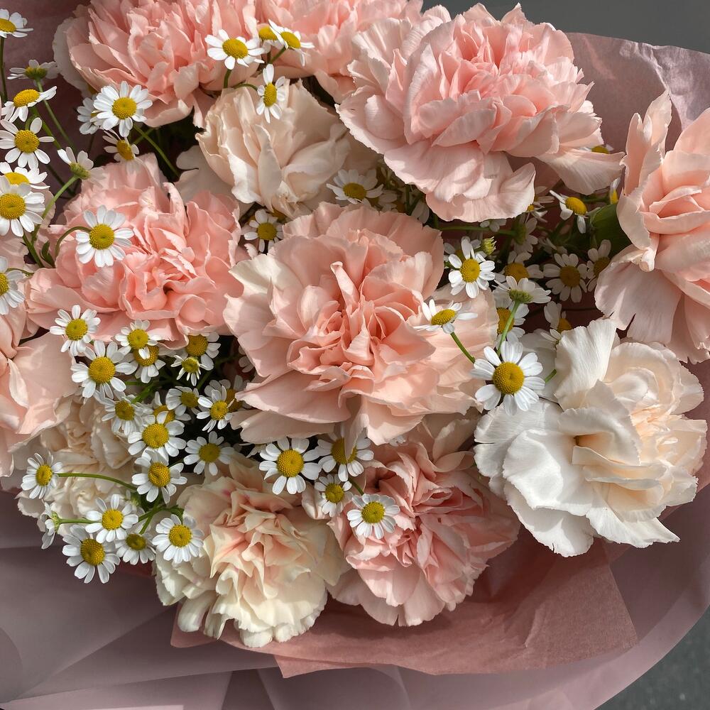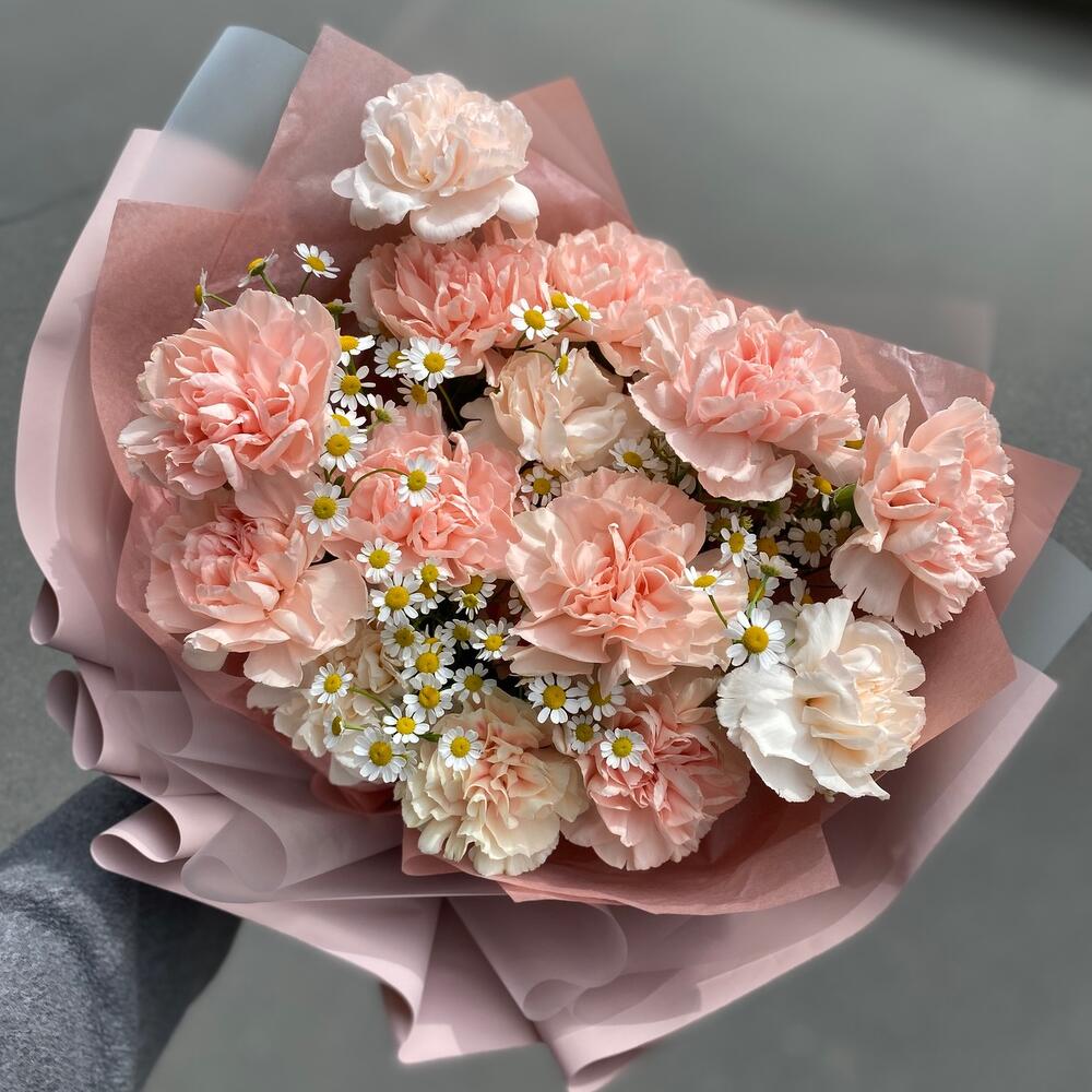 Гвоздика – 15 шт.Матрикария – 4 шт.Упаковка – 2 шт.Лента – 2 шт.