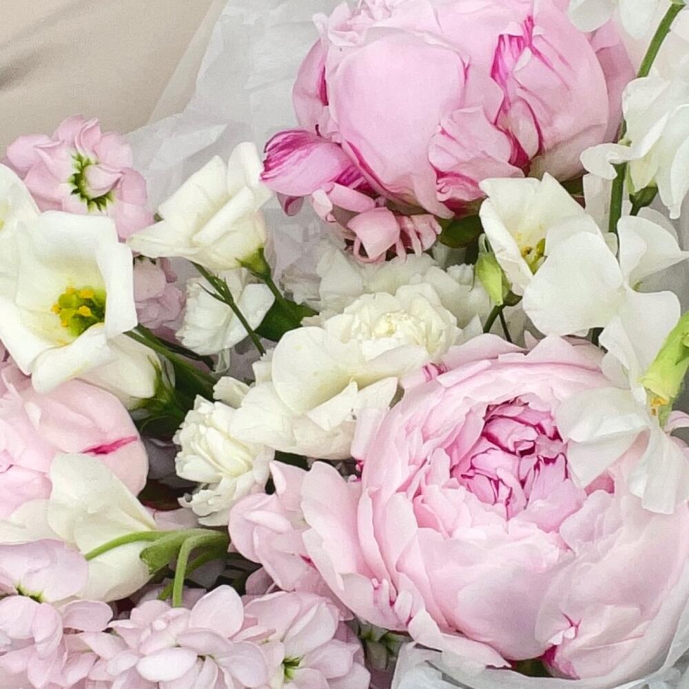 Нежный букет с изящными пионами сорта Сара Бенрнард, ароматными латирусом и маттиолойМы используем для создания наших букетиков только качественный и свежий цветокСоздаем букеты с невероятной любовьюК букетику мы всегда прилагаем подкормку для цветочков – «chrysal”, чтобы они дольше сохраняли свою свежесть и красоту а также «Советы флористов» по уходу за срезанными цветочками Дополнительно к букетику Вы можете приобрести аквабоксы, транспортировочные коробки, крафтовые пакеты и вазы нужного размера