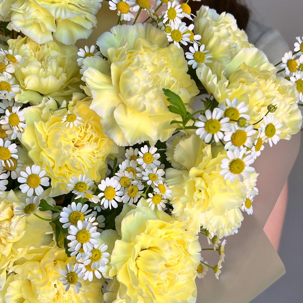 Букет солнечного настроения с ароматной голландской ромашкой! За счет своего состава букет будет долго стоять и радовать своей красотой:)Все наши букеты доставляются в воде!Не забудьте подрезать цветы перед тем как ставить в воду. Не храните букет на прямых солнечных … Показать ещёлучах и возле отопительных приборов, чтобы сохранить цветы как можно дольше.