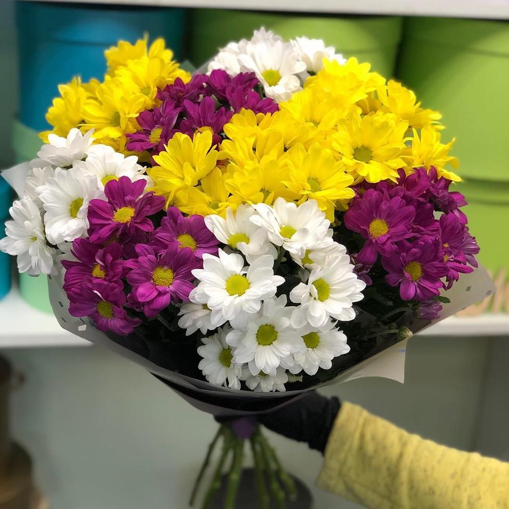 Букет из 9 разноцветных кустовых хризантем