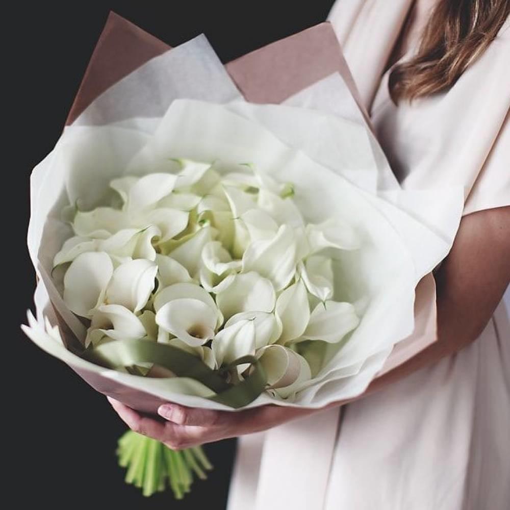 Букет из 39 белых калл в нежной упаковке