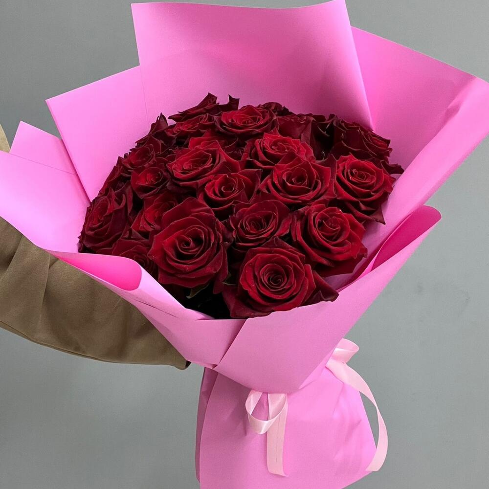 21 красная роза в упаковке