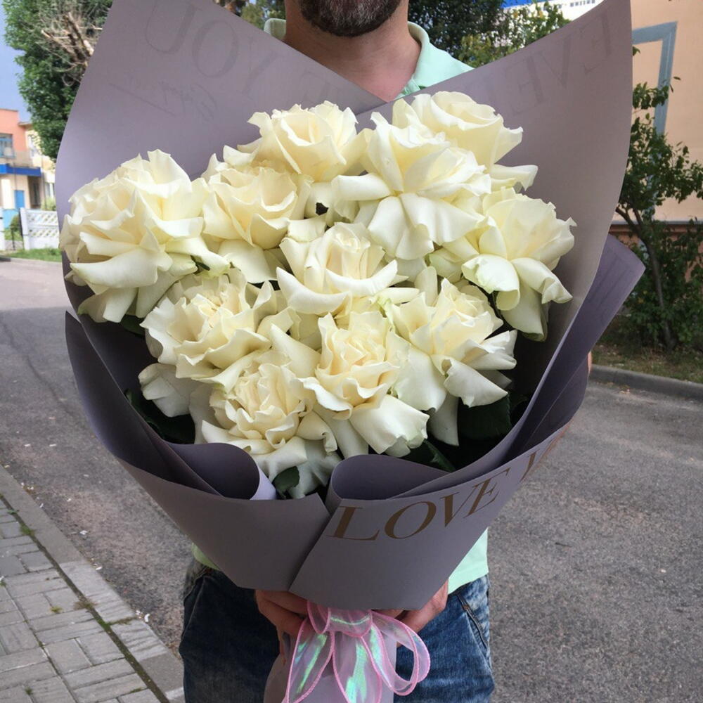 Упаковка дизайнерская – 1 шт. роза французская белая – 11 шт.