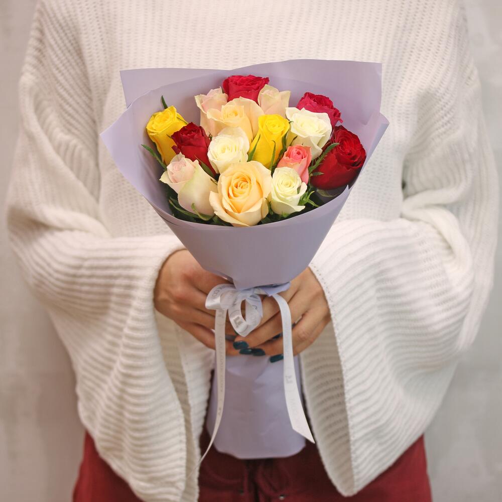 Букет из 15 роз микс 35-40 см (Кения) в упаковке