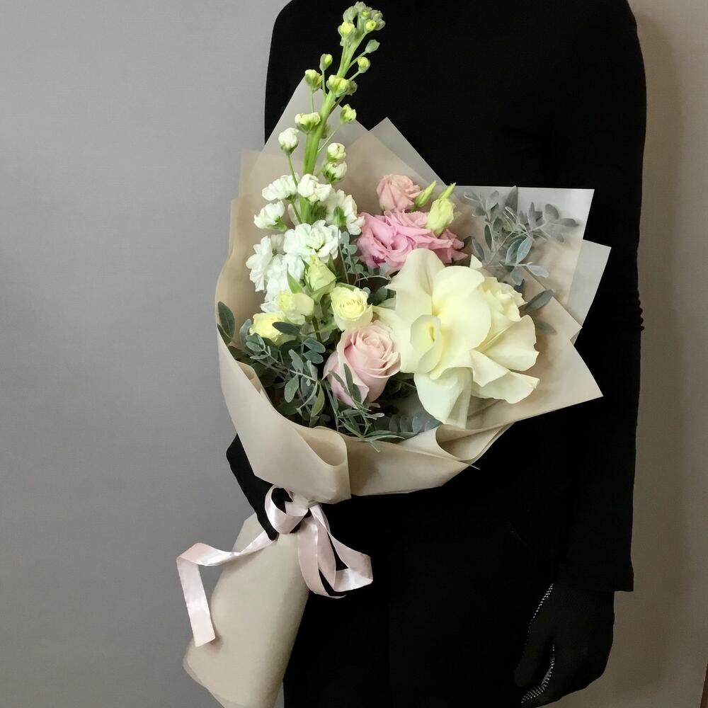 Букет из роз, матиоллы и эустомы «Просто так»