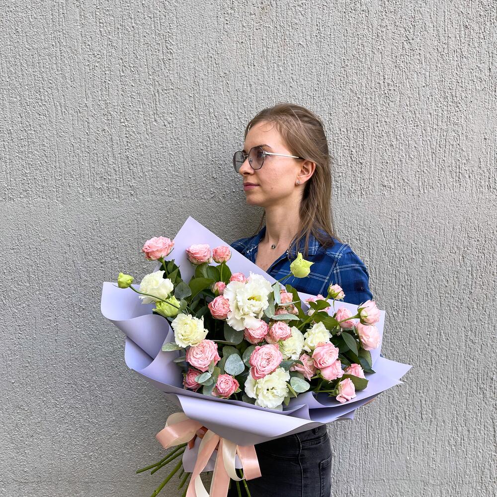Категорий: Кустовые розы, Лизиантусы, Розы, Эвкалипт, Эустома
