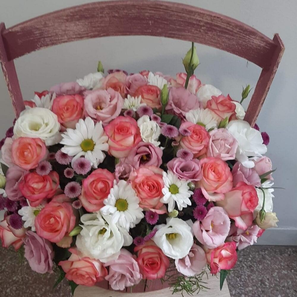 Кустовые розы, Лизиантусы, Розы, Сухоцвет