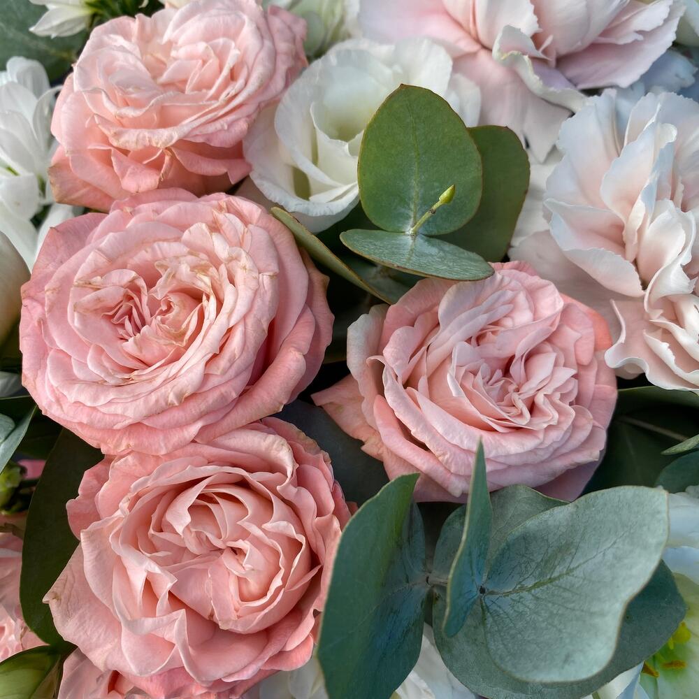 Категорий: Гвоздики, Кустовые розы, Лизиантусы, Пионовидные розы, Розы, Хризантемы