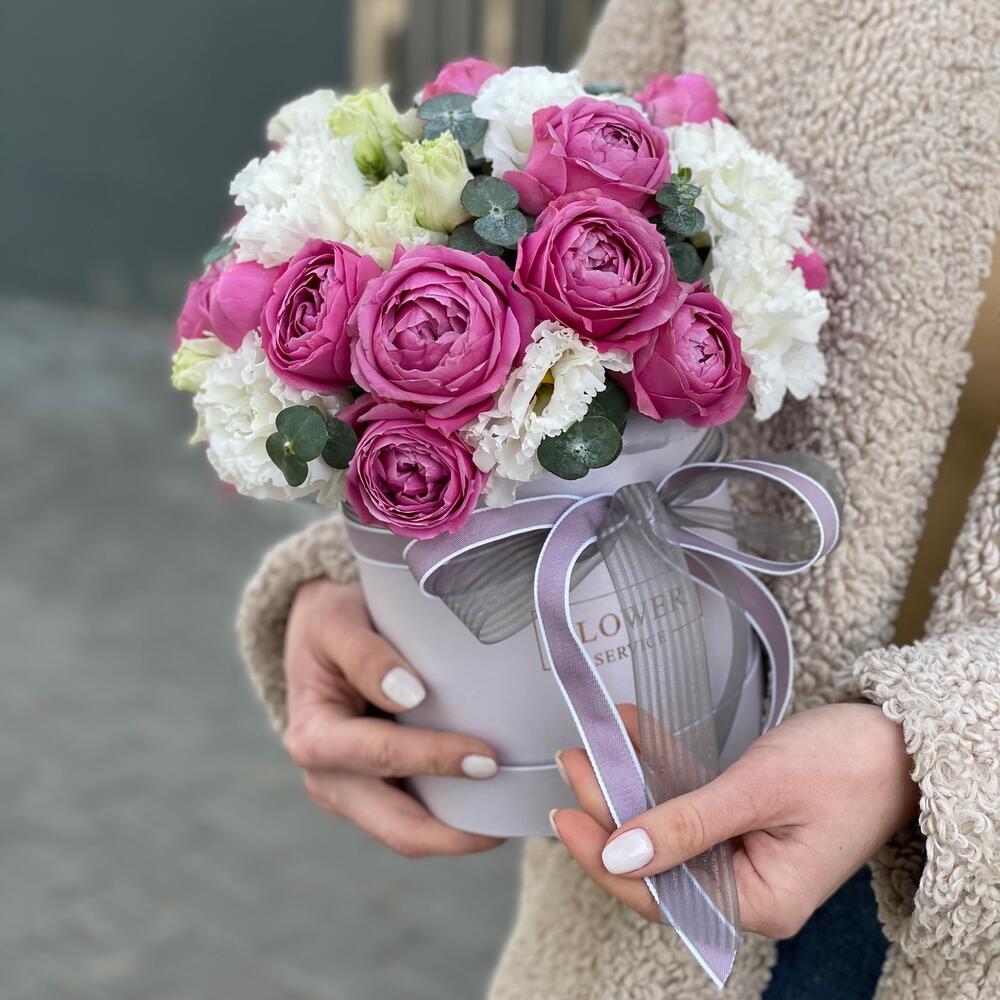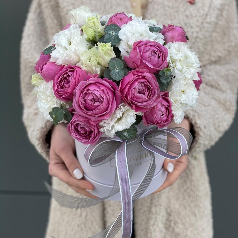 Коробка из пионовидной розы Misty Bables и эустомы!