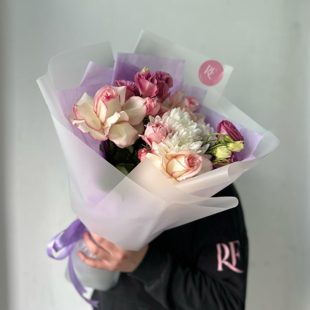 Гвоздики, Кустовые розы, Лизиантусы, Пионовидные розы, Розы