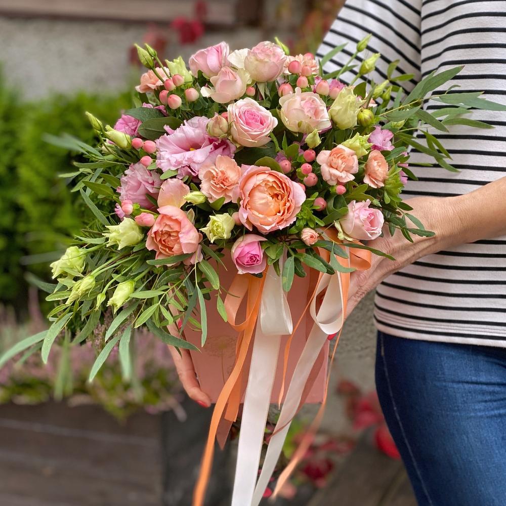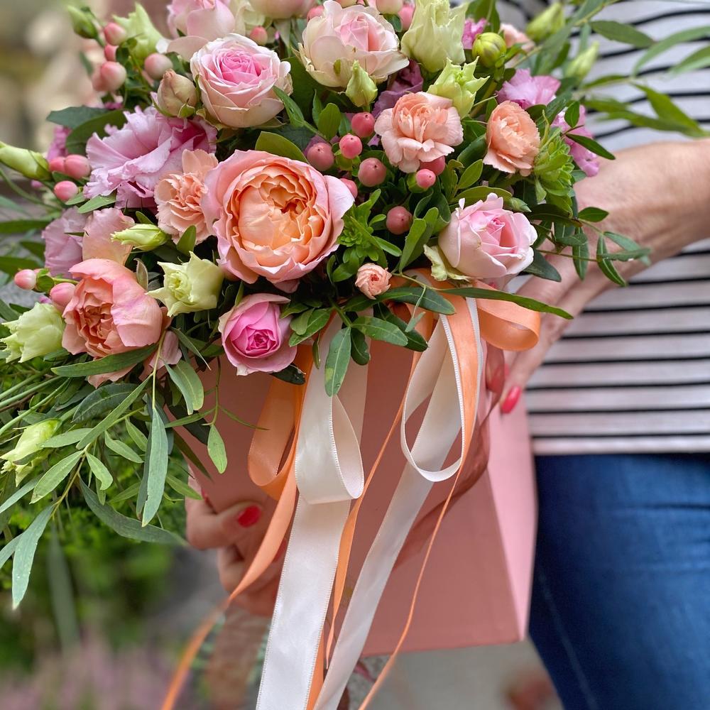 Гвоздики, Лизиантусы, Розы, Тюльпаны