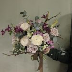 Ранункулюс – 3 шт.Клематис – 2 шт.Тубероза – 2 шт.Маттиола – 3 шт.Астранция – 2 шт.Роза сортовая – 5 шт.Сантини – 5 шт.Ветки – 2 шт.Эвкалипт – 5 шт.