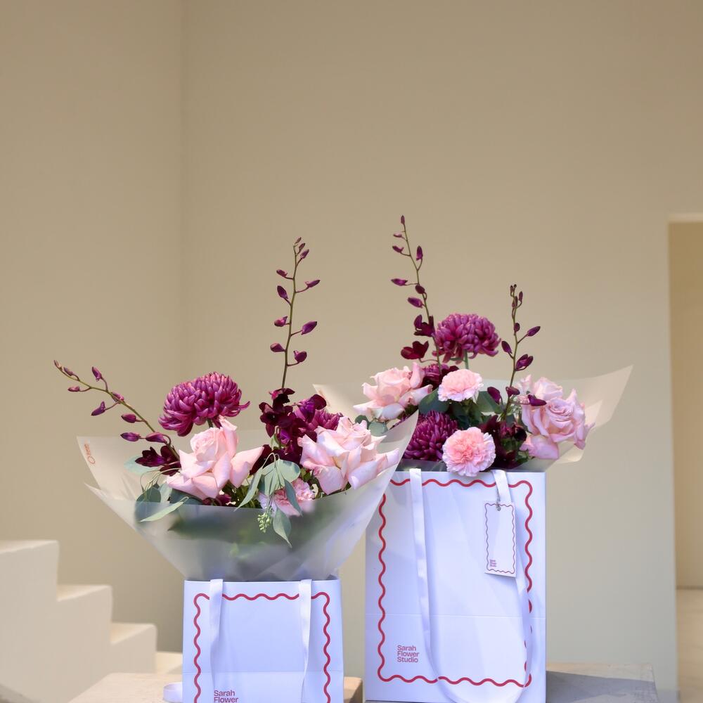 Гвоздики, Лизиантусы, Розы, Тюльпаны