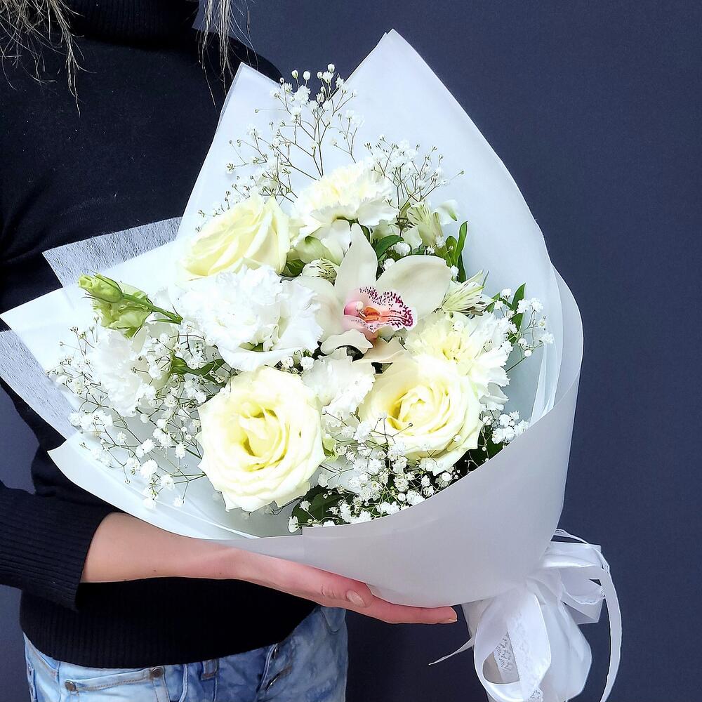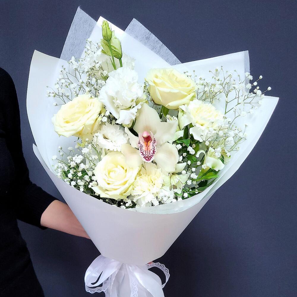 Категорий: Альстромерии, Гвоздики, Гипсофила, Лизиантусы, Орхидеи, Розы
